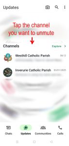- Tap the Updates icon to open the list of channels